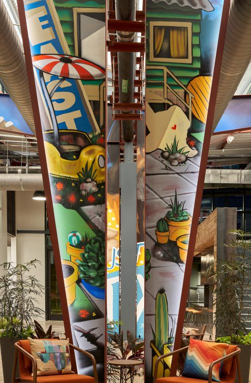 UpCycle is located in the trendy East Austin submarket in Austin, Texas. Originally developed and used as a recycling facility in the late 70’s, George Oliver completed a full top to bottom transformation of the warehouse facility to create an ultra-hip creative office building. Completed in 2018, UpCycle features creative office space complemented by a common atrium with a coffee bar, community seating, gaming area, common meeting space, floor to ceiling local artists murals, and private outdoor tenant patio space accesses by glass roll up doors. True to the creative nature of George Oliver, UpCycle also incorporate a number of the existing features of the facility into its new design. The existing rail line in the building, houses a 1963 box car which is utilized as an outdoor seating space for the building’s users. George Oliver, has also worked with local Austin artists to paint floor to ceiling murals in the common lobby area which will continue to tell the story of this location’s rich history. Upon completion the building was 100% leased to H-E-B who occupies the space in Q2 2019.